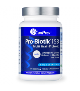 CanPrev’s Pro-Biotik™ 15B is a shelf-stable probiotic capsule formula containing five critical probiotic species naturally found in the human intestinal tract, including bifidobacteria and lactobacilli. Each species...